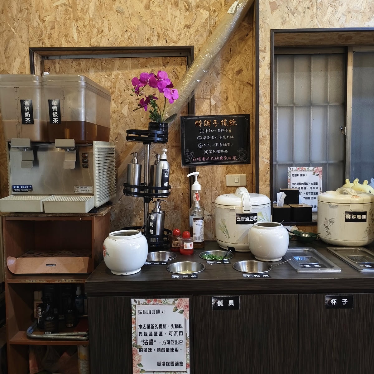 飲料自取喝到飽這其實在各大火鍋店都一樣已經不奇怪,但這邊特別的是還能自調,想喝什麼口味的手搖飲自己來