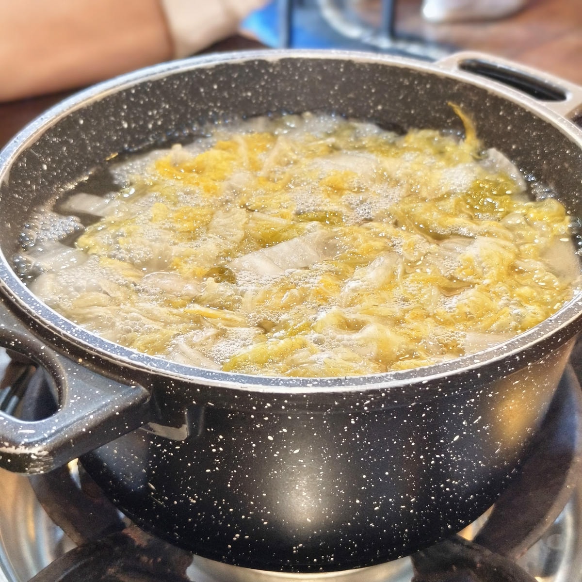 像我這次點的「東北酸菜鍋」,就是我的心頭好。酸香的湯頭,搭配上那滿滿的東北酸菜,簡直是好喝又絕配!
