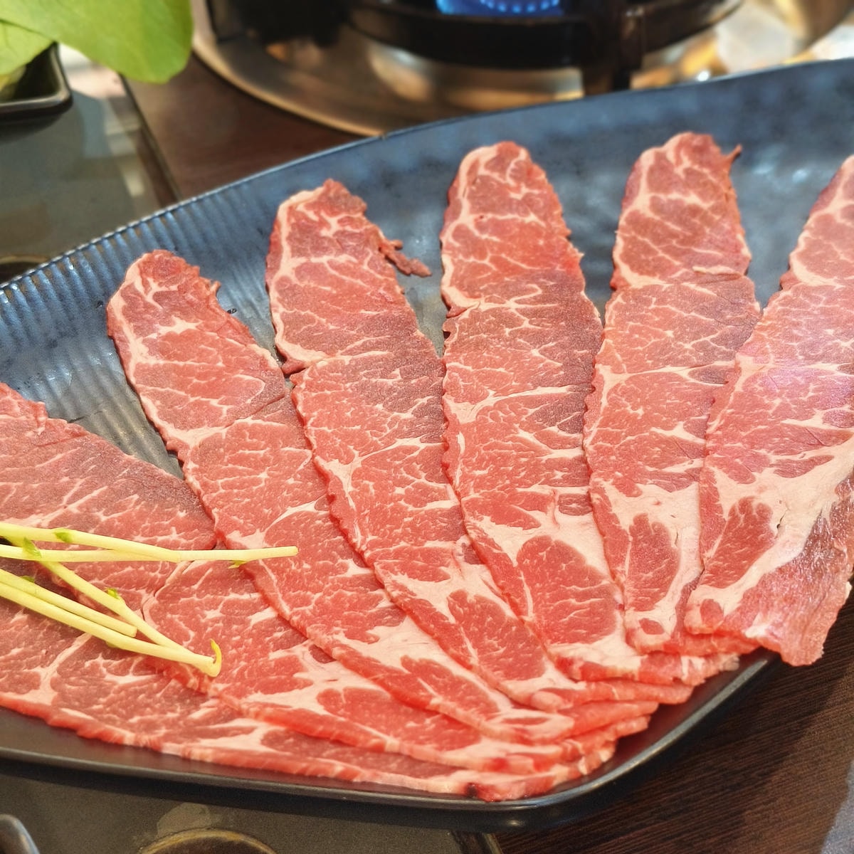 這次點的肉盤則是霜降牛跟梅花豬首先霜降牛跟梅花豬這兩種肉質都相當不錯,吃起來鮮嫩多汁,而且油花分布均勻,不會讓人覺得膩口
